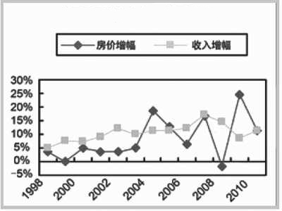 从2008年下半年开始,受国家房地产市场调控政策作用和国际金融危机的影响,我国房地产市场一度出现“价跌量减”的局面。但2009年第二季度以后,房价不但实现恢复性增长,且一路攀升,超过金融危机前的最高价。当年全国商品住宅平均价格涨幅达24.7%,远超过居民收入8.8%的增幅。一些大城市房价—收入比超过10,房价—租金比低至1∶500以下,远超出通常认可的合理范围。