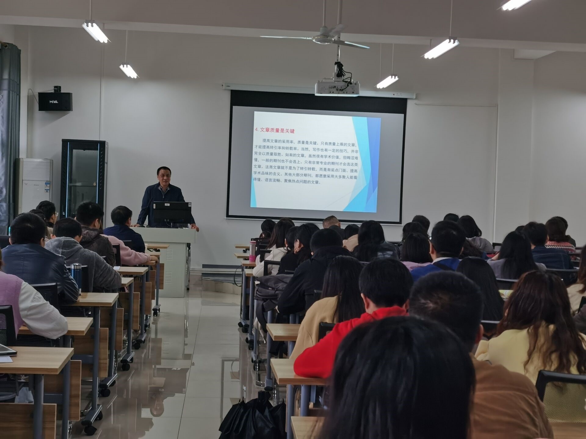 吴纪宁研究员的讲座,深入浅出,贴近师生科研实际,结合大量具体案例,总结了很多人文社科类核心期刊论文写作和投稿的注意事项,师生们受益匪浅。