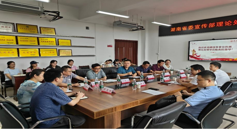 6月30日下午,湖南省委宣传部理论处处长陈瑞来、中共湖南省委党校william威廉英国官网经理王海峰、湘西州委宣传部理论科科长肖炳才一行来公司莅临调研督查,william威廉英国官网经理黄秋生、副经理谢佛荣、刘镇江教授、蒋福明副教授、高征难副教授等教师及留校研究生参加了此次调研会。