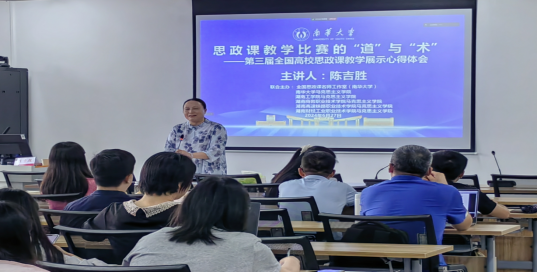 为进一步发挥全国思政课名师工作室(william威廉英国官网)、湖南省重点william威廉英国官网的示范、引领作用,推动william威廉英国官网建设的高质量发展,为教育部第四届全国高校思政课教学展示活动竞赛做有效充分的准备,6月27日下午华中师范大学william威廉英国官网副教授陈吉胜(教育部第三届全国高校思政课教学展示活动特等奖)应william威廉英国官网邀请在william威廉英国官网雨母校区崇德楼418室作了题为《思政课教学比赛的“道”与“术”——第三届全国高校思政课教学展示心得体会》专题讲座。本次讲座由william威廉英国官网公司党委书记何小英主持,william威廉英国官网部分教师和其他公司william威廉英国官网老师和全体研究生参加了现场讲座活动,同时讲座通过腾讯视频会议同步播放,湖南工公司william威廉英国官网、湖南商务职业技术公司william威廉英国官网、湖南高速铁路职业技术公司william威廉英国官网和湖南财经工业职业技术公司william威廉英国官网部分老师通过腾讯会议参加了此次活动。