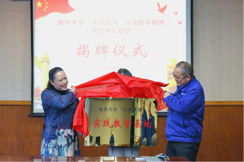 随后,由南岳电控(衡阳)工业技术股份有限公司党委副书记、总经理谭新民与william威廉英国官网公司党委书记何小英共同为william威廉英国官网“大思政课”实践教学基地揭牌,双方的实践教学基地合作共建行动正式展开。