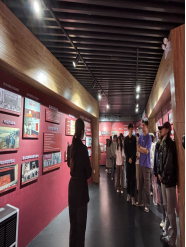 在带队老师和校史馆讲解员张静涵的组织带领下,同学们先是通过红湘、雨母两校区三维沙盘模型,系统了了解公司功能布局与发展规划。随后,师生们沿着校史脉络展开深度研学:从衡阳矿冶工程公司的肇基之始,到世纪之交中南工公司与衡阳医公司合并组建的跨越发展;从核科学与技术、基础医学等优势学科的建设成果,到历代南华人矢志报国的奋斗群像。通过核反应堆模型解析、多媒体互动体验等沉浸式教学,同学们切身感受到了“勤勉务实、甘于奉献”的南华精神。