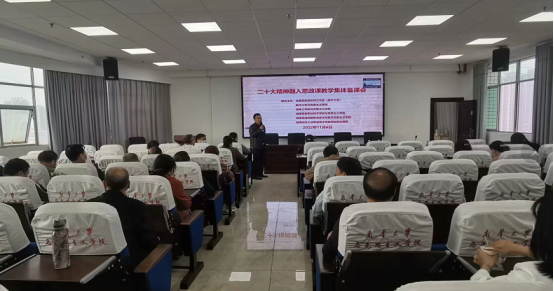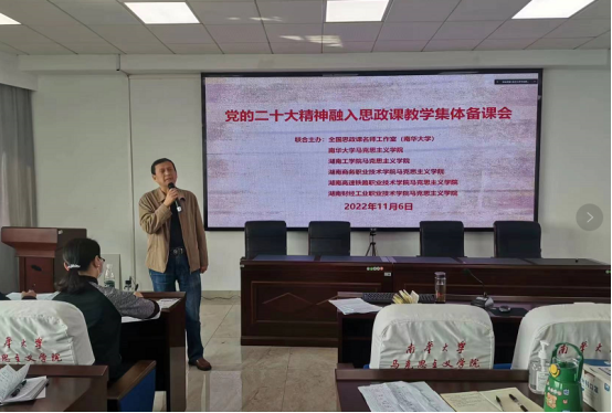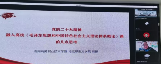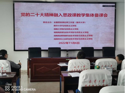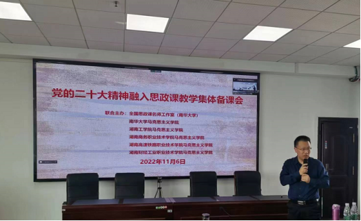 为深入学习宣传、贯彻落实党的二十大精神,全面深入推进党的二十大精神进教材、进课堂、进头脑,提升新时代老员工为全面建成社会主义现代化强国及为实现中华民族伟大复兴“中国梦”而努力的自觉性和自信心,增强思政课教学的时代性、针对性和实效性。11月6日,william威廉英国官网与湖南工公司william威廉英国官网、湖南商务职业技术公司william威廉英国官网、湖南高速铁路职业技术公司william威廉英国官网和湖南财经工业职业技术公司william威廉英国官网联合开展党的二十大精神融入思政课教学的集体备课活动。