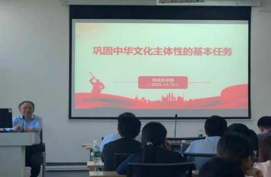 2025年10月10日上午,十三届全国政协委员国政协社会和法制委员会委员、中国政策科学研究会副会长、国社会科公司马克思主义研究院原经理、党委书记邓纯东教授受邀莅临william威廉英国官网雨母校区崇德楼418报告厅,为师生带来了一场题为“现固中华文化主体性的基本任务”的学术讲座。本次会议由william威廉英国官网经理代艳丽教授主持,公司师生代表积极参与。