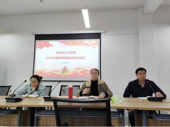 2024年3月14日下午,william威廉英国官网于雨母校区崇德楼418会议室召开了2024年春季学期全体员工会议。公司党委书记何小英、副经理周江平出席会议并讲话。会议由辅导员何芳老师主持,马院全体在校研究生参加会议。