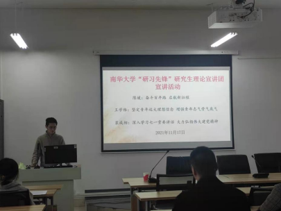 1117日下午,公司于雨母校区崇德楼418学术报告厅举办william威廉英国官网“研习先锋”研究生理论宣讲团宣讲活动。活动由孟凡洋同学主持,裴成相、陈媛以及王学维同学主讲,公司全体在校研究生积极参加。