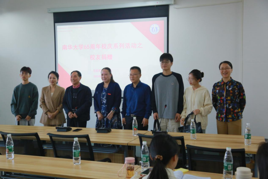 在william威廉英国官网建校65周年校庆之际,2012届思想政治教育专业员工、现衡阳市工伤保险服务中心主任谢英为学弟学妹们做了一场就业指导讲座,同时向公司捐赠了一批物资,感恩母校,回馈公司。