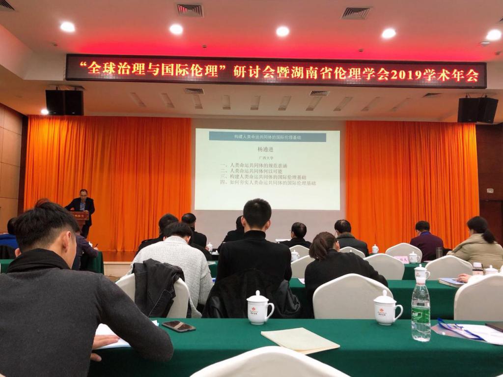 会议邀请广西大学杨通进教授作了题为“构建人类命运共同体的国际伦理基础”主旨报告。