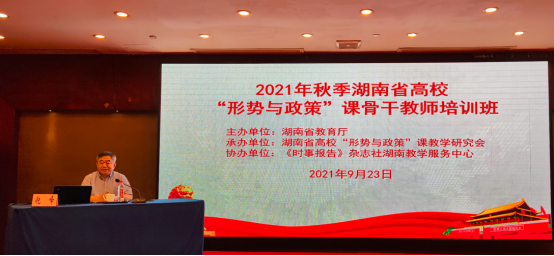 2021年秋季湖南省高校“形势与政策”课骨干教师培训班如期开班。此次培训班由湖南省教育厅主办、湖南省高校“形势与政策”教学研究会承办,《时事报告》杂志社湖南教学服务中心联合协办。