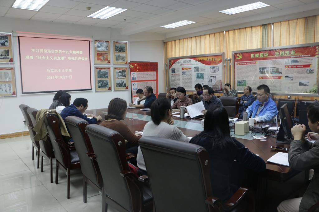 为深入学习贯彻党的十九大精神,公司党总支于2017年10月27日下午在1教1303会议室举办了学习贯彻落实党的十九大精神暨观看“社会主义有点潮”电视片座谈会。座谈会由公司党总支书记肖宗志主持,公司全体教职工参加了座谈会。