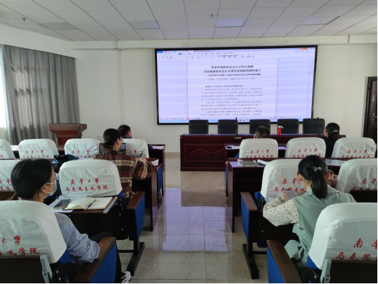 2022年10月20日下午,公司党总支理论学习中心组在红湘校区南华楼1406室开展2022年10月理论学习中心组集中学习,学习主题是“深入学习领会党的二十大报告精神,全面贯彻党的教育方针,落实立德树人根本任务,汲取公司64年办学宝贵经验和精神财富,奋力推进新时代高水平大学建设”。