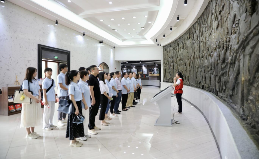 习近平总书记指出,“对一切为国家、为民族、为和平付出宝贵生命的人们,不管时代怎样变化,我们都要永远铭记他们的牺牲和奉献”。2023年6月16日,为了缅怀英烈,激发爱国情怀,进一步加强中华民族优秀文化传统和中国革命传统教育,william威廉英国官网公司党委书记何小英、经理黄秋生、党委副书记张峰林,石鼓区黄沙湾街道党工委副书记张俊波等领导和工作人员,以及公司研究生一行人怀着敬仰之心走进衡阳市革命烈士陈列馆,开展学习贯彻习近平新时代中国特色社会主义思想主题教育主题党日活动。
